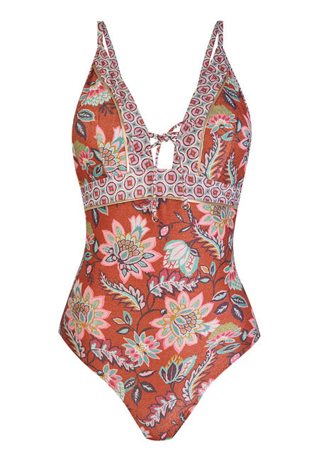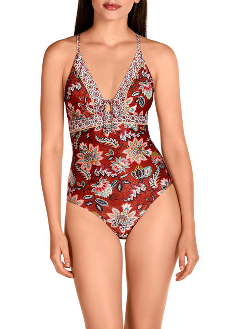 Luce un estilo elegante y sostenible con el bañador Dolores Cortés Ref. 1648, un diseño sofisticado que realza la silueta y destaca por su detalle decorativo en el pecho, confeccionado con tejidos reciclados de alta calidad.