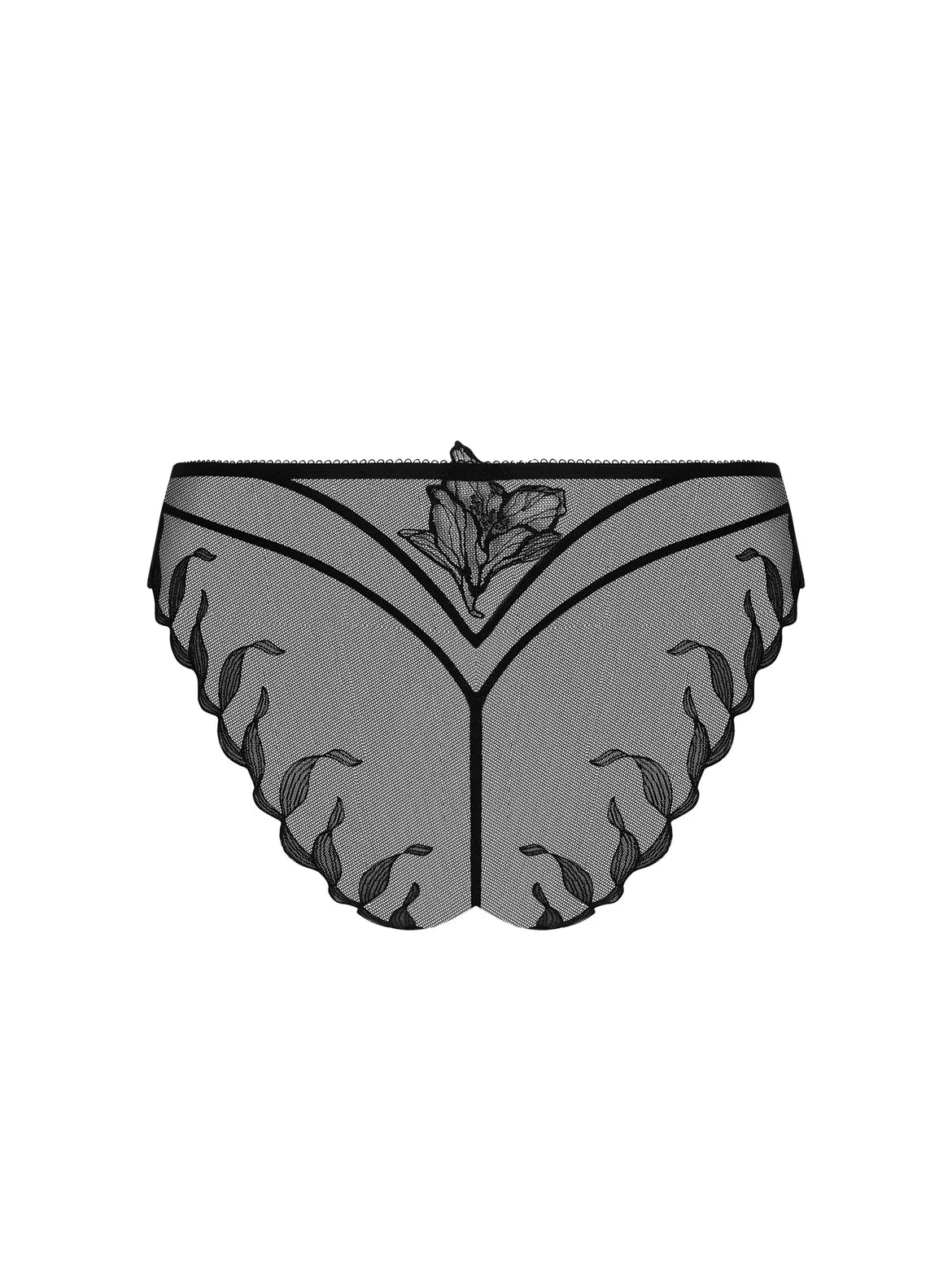 Esta braga seducción de Lise Charmel combina sensualidad y sofisticación en un corte brasileño que descubre media nalga con elegancia. Confeccionada en tul bordado con delicados festones en los muslos, incorpora transparencias en la parte delantera con cortes afilados y un motivo floral bordado en el centro. La espalda, con cortes triangulares, estiliza la silueta y resalta un gran motivo floral bordado, sello distintivo de la lencería francesa de lujo.