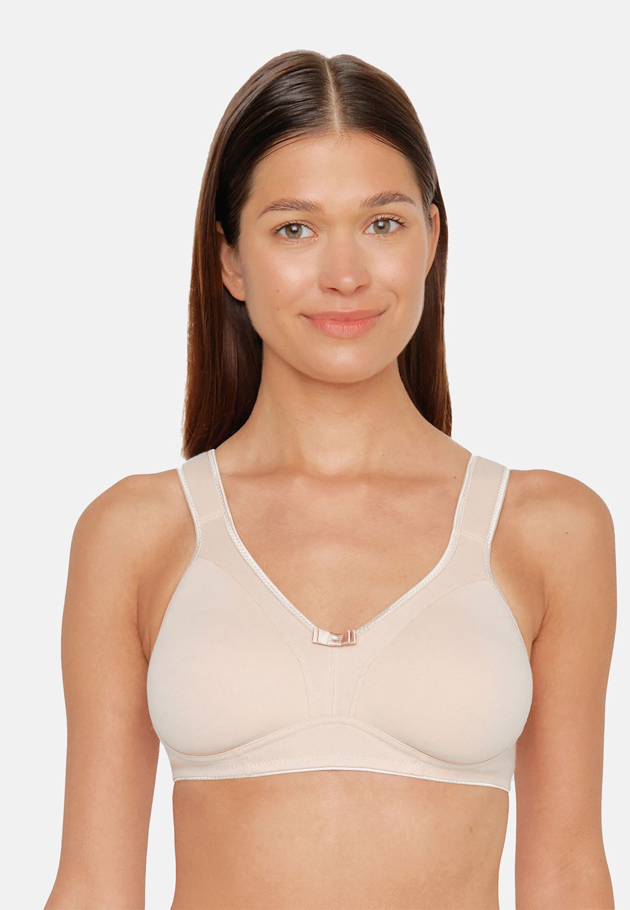 Este sujetador sin aros de la línea Basics está diseñado para brindarte comodidad total y una sujeción superior, ideal para el uso diario. Sus copas preformadas sin costuras y los paneles de refuerzo en el escote garantizan una sujeción firme y natural. Además, sus tirantes acolchados extra anchos ofrecen confort incluso durante largas jornadas.