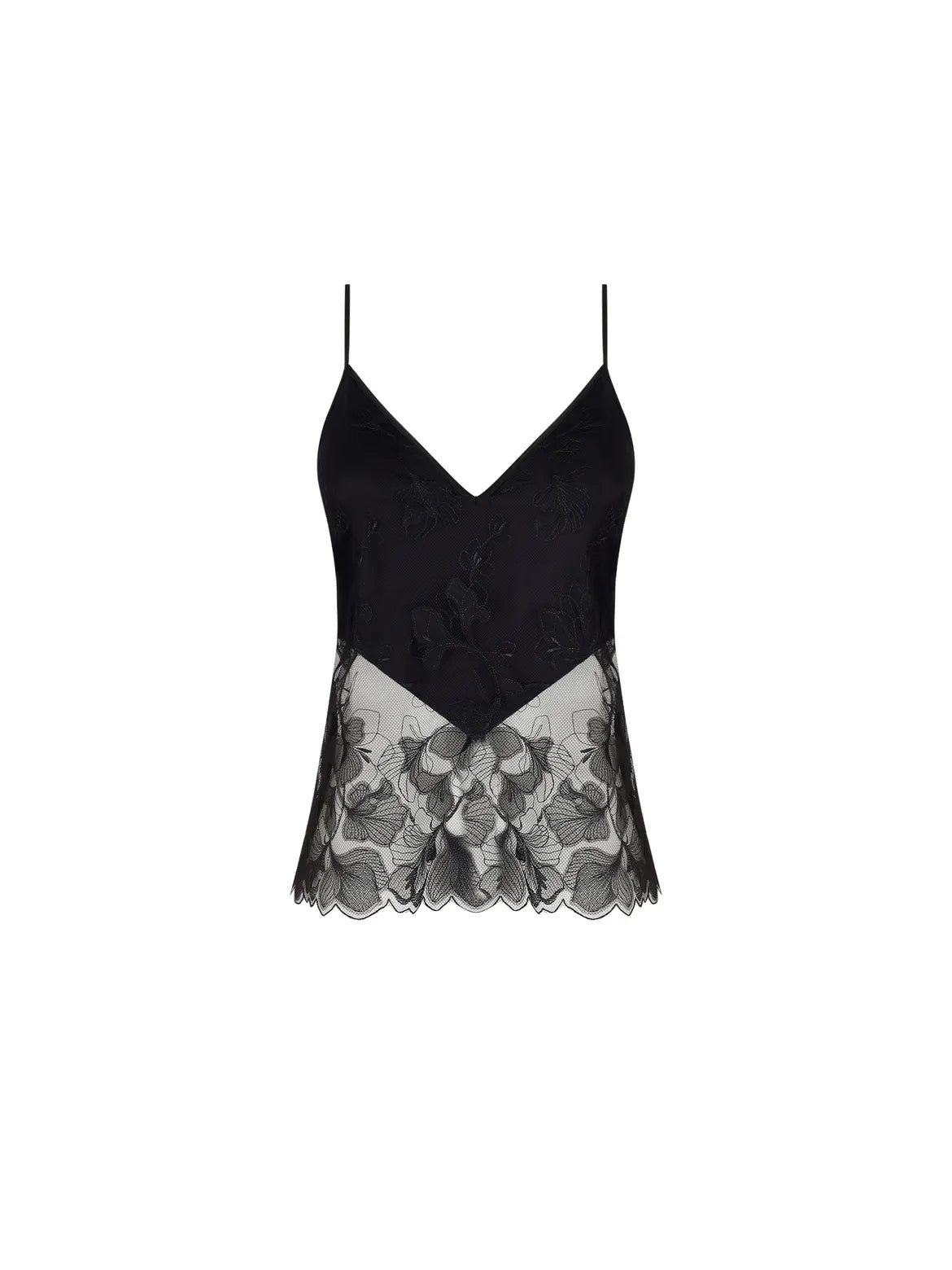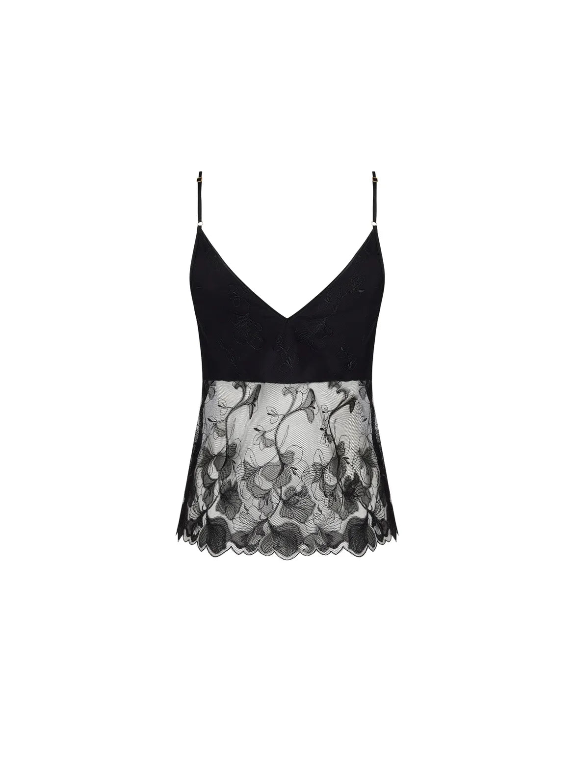 Este caraco de Lise Charmel es una prenda versátil y refinada, perfecta para lucir tanto como top exterior de tendencia como prenda interior de lujo. Confeccionado en organza bordada y forrado en tul, combina opacidad y transparencia para un efecto sofisticado. La parte superior de la espalda incorpora malla opaca y suave, mientras los tirantes ajustables en satén de seda añaden un toque exclusivo propio de la lencería francesa de alta gama.