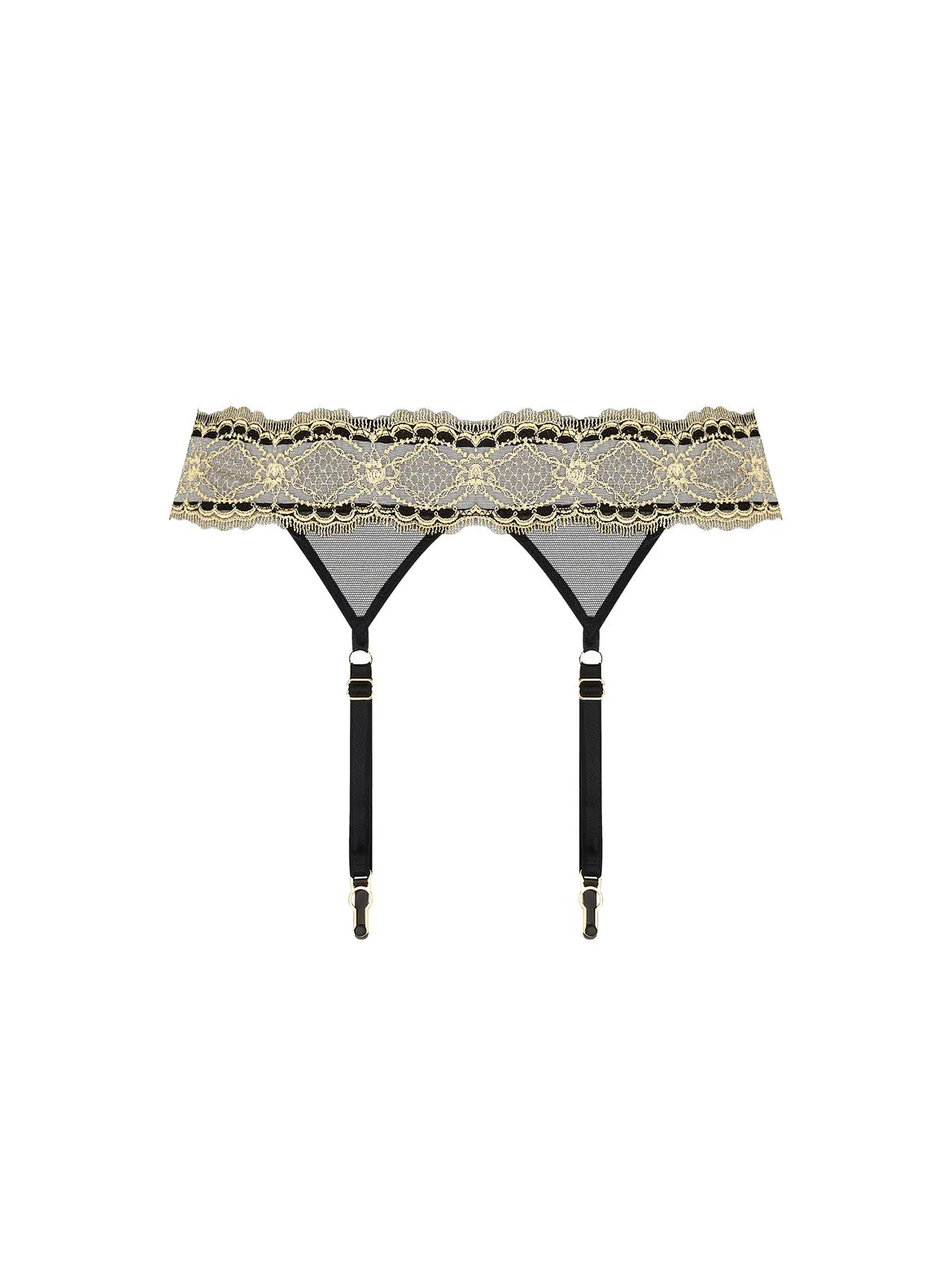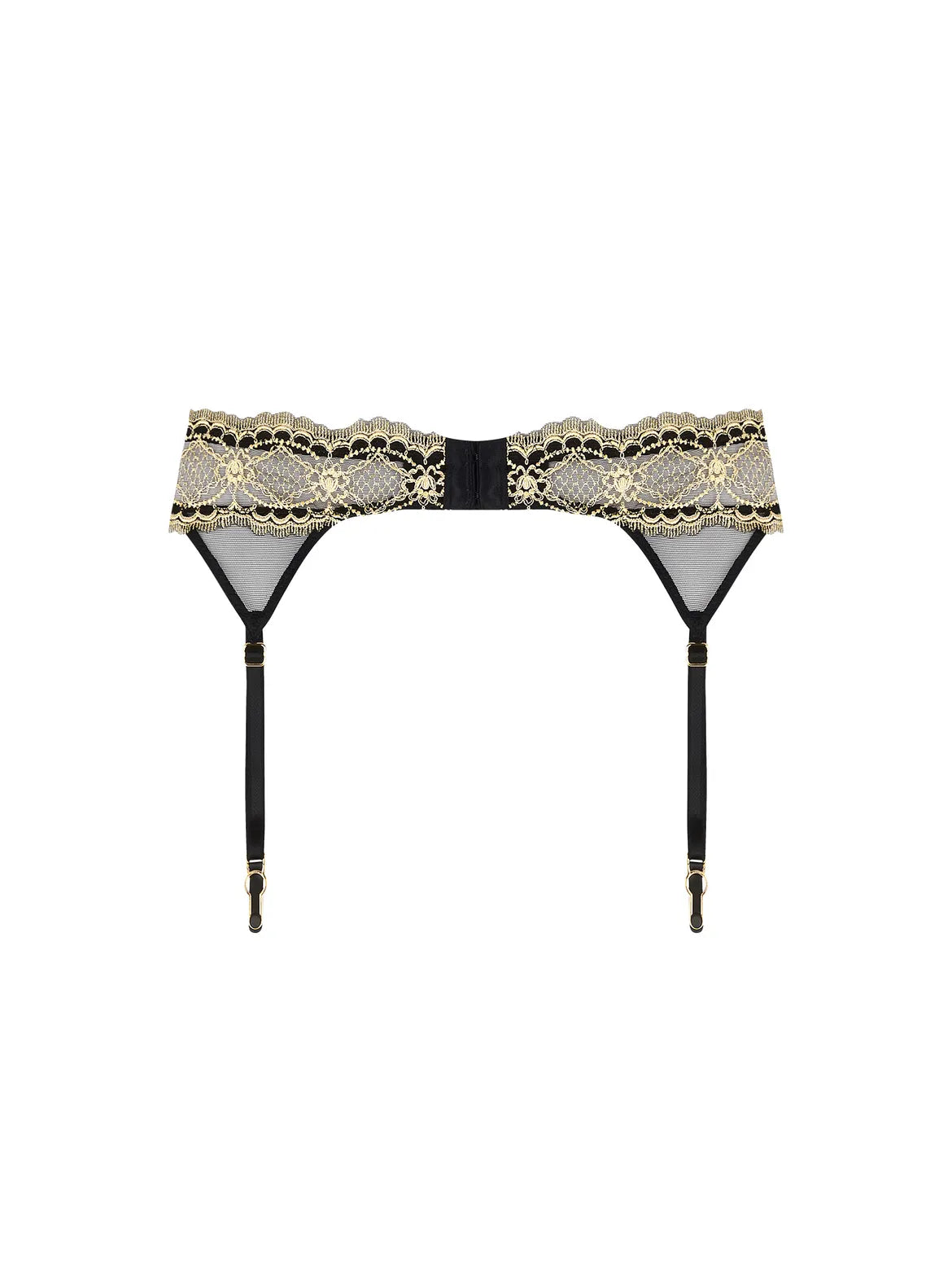 Este liguero de Lise Charmel es la definición de seducción refinada, diseñado para llevar en las caderas y realzar la feminidad con elegancia. Confeccionado en tul lycra negro, incorpora bordado laminado festoneado incrustado que aporta un toque de lujo artesanal. Sus cierres específicos permiten sujetar las medias con estilo y sofisticación.