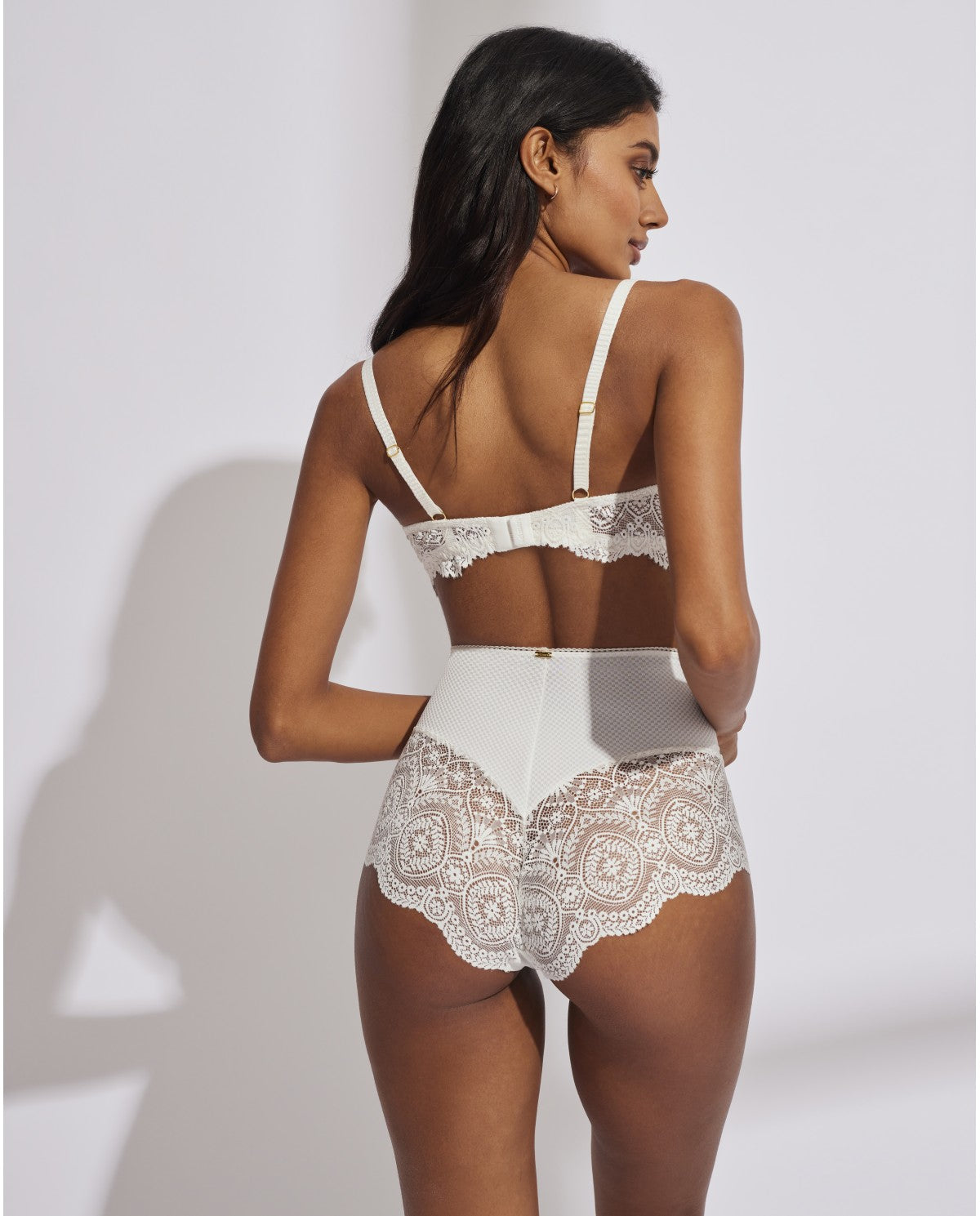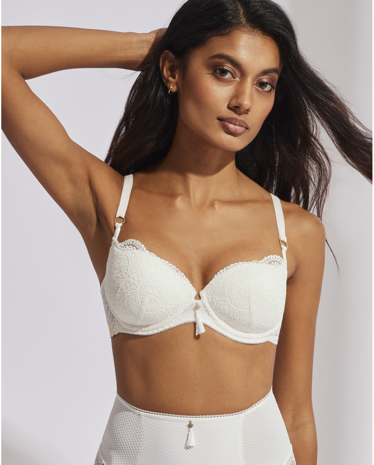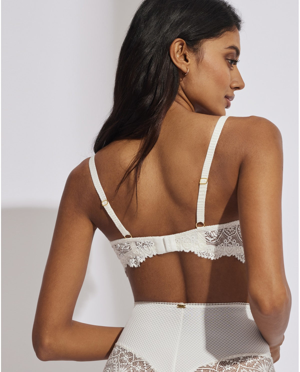 Este sujetador moldeador ofrece un efecto envolvente que realza la figura con comodidad. Su espectacular diseño de encaje combina un estilo romántico y bohemio, aportando sensualidad, frescura y elegancia. Una prenda ideal para mujeres libres y auténticas que buscan un equilibrio perfecto entre soporte y belleza.